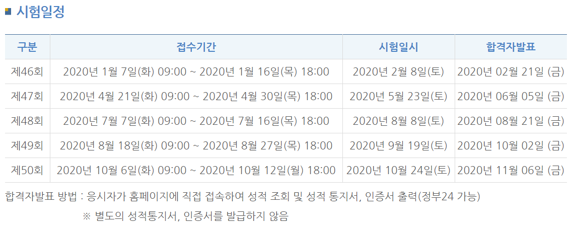 2020년 한국사능력검정시험 일정