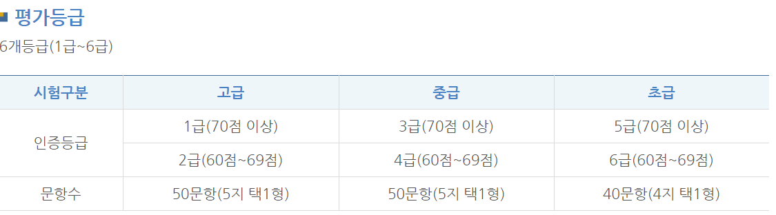 70점 이상만 받으면 1급 자격증을 취득할 수 있다. 근데, 은근히 1급에서 떨어지는 사람들이 많다. 왜냐면, 일부 후기들에서 '일주일만에 한국사 1급 합격했다' 또는 2주만 공부하면 충분히 1급 딴다고 하는 내용이 상위에 랭크되었기 때문이다. 그러나, 누군가의 후기를 보고 '나도 단기간 공부하면 가능하겠지'라고 생각하면 오산이다. 저마다 한국사에 대한 기본 지식과 이해가 다르기에 본인 능력치를 잘 판단해서 수험기간을 설정해야 한다.