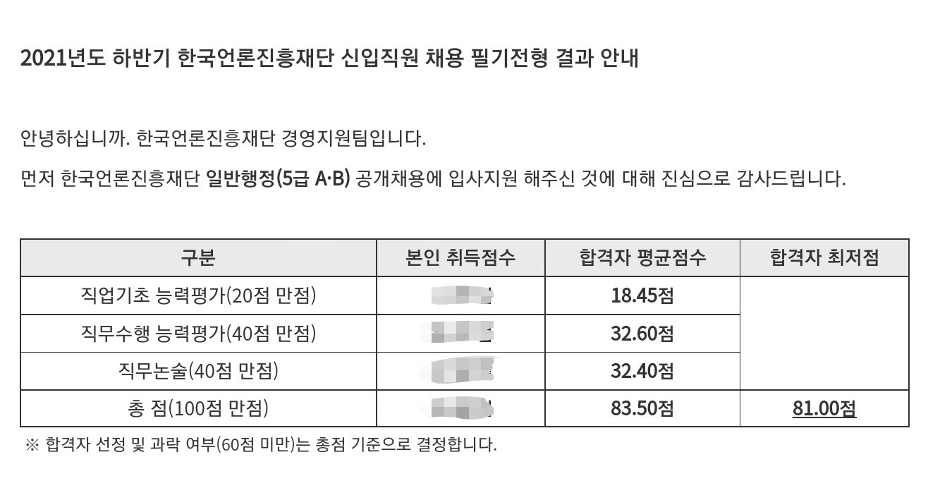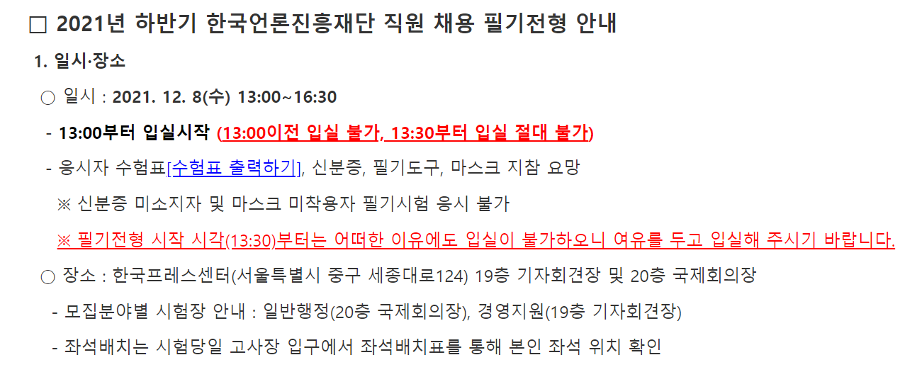 운좋게 한국언론진흥재단 서류에 합격해서 필기를 보고 왔다.