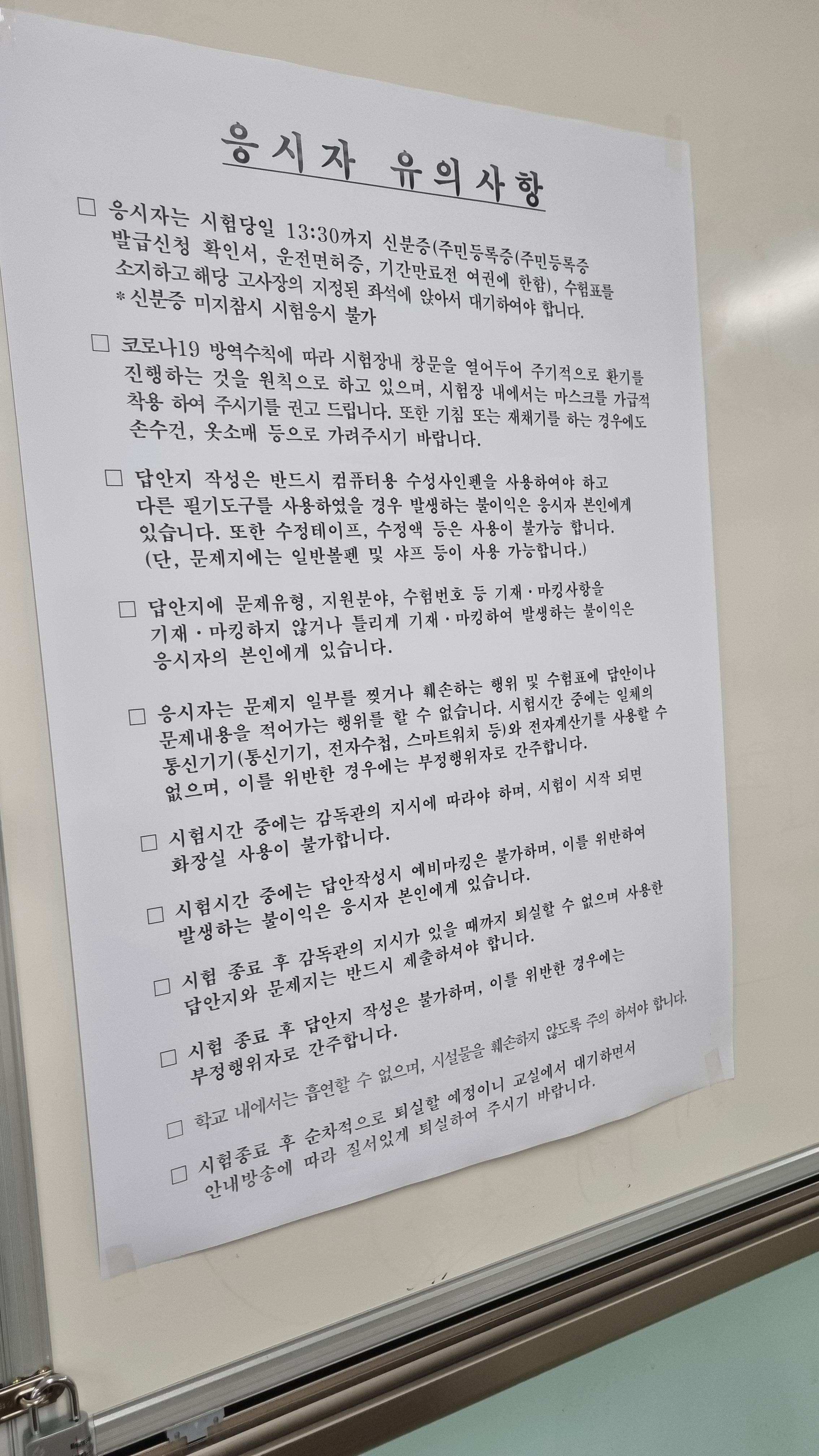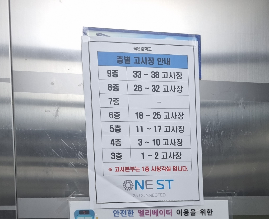 시험은 목운중학교에서 봤다. 9층까지 있는 학교가 있다니,, 처음엔 계단으로 올라가야하나 욕나올뻔했지만, 다행히 엘리베이터가 있었다.